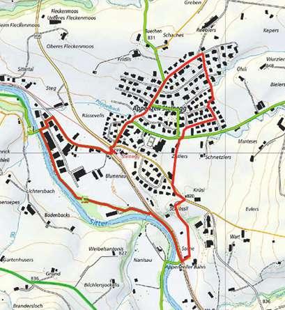 Bald ist die St. Anna-Kapelle zu sehen, welche als schönste Rokoko-Kapelle Innerrhodens gilt. Weiter folgen Sie der Sitter bis rechts auf einer kleinen Anhöhe beim Hallenbad die Lourdes-Kapelle grüsst. Beliebt für Maiandachten, liegt diese letzte Kapelle besonders schön. Ein letztes Mal wird die Sitter auf einem Fussgängersteg überquert und Sie sind zurück im Dorfkern von Appenzell.