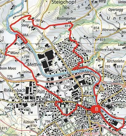Von der Tourist Info Appenzell aus geht es zuerst durch die belebte Hauptgasse vorbei an der Kreuzkapelle und geradeaus zur stattlichen St. Antonius-Kapelle. Nachdem Sie ein kurzes Stück in Herkunftsrichtung zurückgegangen sind, führt der Weg vis-à-vis des Gymnasiums links ab via Sandgrube zur ehemaligen Münzprägerei. Nach der Überquerung des Kaubachs passieren Sie die Dreifaltigkeits-Kapelle mit herrlicher Ruhebank und in einem weiten Bogen führt der Weg nun zur Sitter. Über die wunderschöne, gedeckte Holzbrücke gelangen Sie via Lank zur kleinen Kapelle St. Verena. Nach einem steilen aber kurzen Aufstieg erreichen Sie die St. Karl Borromäus Kapelle auf der Steig, eine der historisch bedeutendsten Kapellen der Pfarrei Appenzell in einmaliger Lage.
