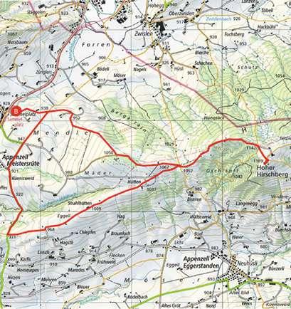 Ausgehend vom Sammelplatz, wandern Sie auf einem gepflegten Weg über die grosszügigen Wiesen der Mendle-Genossenschaft. Unterwegs durchqueren Sie eine wunderschöne Riedlandschaft – ein artenreiches Flachmoor mit Magerwiesen. Das darauffolgende Wegstück führt auf dem Forststrässchen durch den Wald und schon stehen Sie fast beim Berggasthaus Hoher Hirschberg.