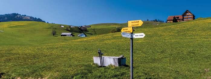 Sie der Weg durch die Moorlandschaft Gontens nach Gontenbad. Gönnen Sie sich eine Erfrischung im Gasthaus Bad Gonten! Geniessen Sie dort im Brunnen eine wohltuende Abkühlung für Ihre Füsse oder entspannen