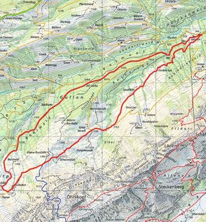Geniessen Sie dort bei einer Einkehr die fantastische und weitum bekannte Rundsicht. Zurück wandern Sie auf demselben Pfad entlang dem Strässchen bis Hütten. Anstatt Richtung Sammelplatz zu halten, folgt nun eines der schönsten Wegstücke überhaupt: Der breite, liebliche und phänomenal aussichtsreiche Hirschberg-Rücken. Dieser endet bei der Abzweigung Guggerloch, wo Sie die Route nach rechts in den Wald und zur besonderen Kapelle St. Ottilia führt. Von dort ist es nicht mehr weit, bis Sie zum Waldrand und zum Sammelplatz gelangen.