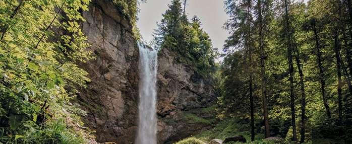 Tipp: Ungefähr auf halber Strecke lohnt sich ein Abstecher zum Leuenfall, wo der Berndlibach von einem 34 Meter hohen Felsband herunterstürzt.