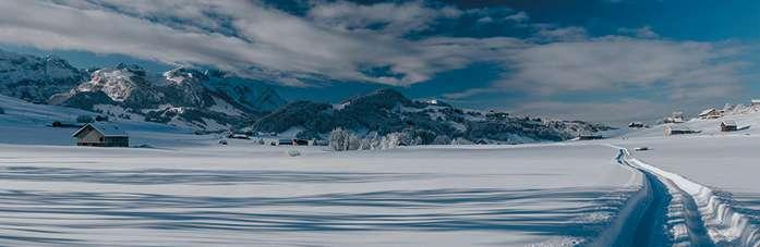 Ein romantischer Winterwanderweg, der abends mit rund 40 Laternen beleuchtet wird. Der «Steene- ond Lateene-Weeg» in Weissbad bei Appenzell lädt Sie auf einem gut ausgebauten und präparierten Winterwanderweg zu einem Spaziergang in unberührter Landschaft ein. Das idyllische Gebiet heisst nicht ohne Grund «End vo de Wölt». Man folgt dem Weissbach und überquert diesen auf einem Steg. Auf der anderen Bachseite verläuft der Weg im Wald und über eine Lichtung zurück zum Ausgangspunkt.