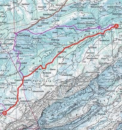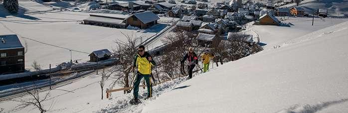 Die empfohlene Marschrichtung einschlagen. Beim Berggasthaus Ruhesitz können Schlitten gemietet werden für eine Schussfahrt hinunter nach Brülisau und wer sich für den Abstieg zu Fuss entscheidet, wird mit viel Nachmittagssonne belohnt.