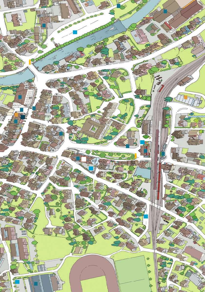 Parkblatz · Gääse Behnli · Rodhuus · Frönti · schöni Hüüse · de Moritz ·