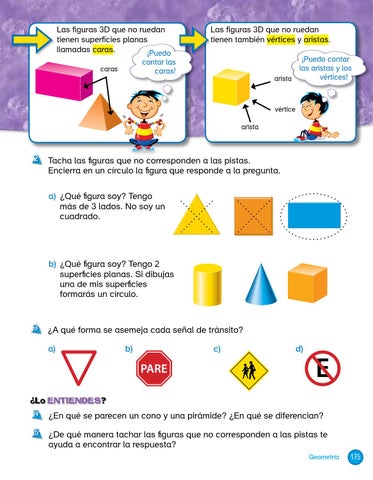 Lo ENTIENDES? 4 ¿En qué se parecen un cono y una pirámide? ¿En qué se diferencian? 5 ¿De qué manera tachar las figuras que no corresponden a las pistas te