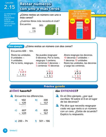 2 .15 ¡Lo entenderás! Más de un reagrupamiento puede ser necesario para restar un número con un cero.