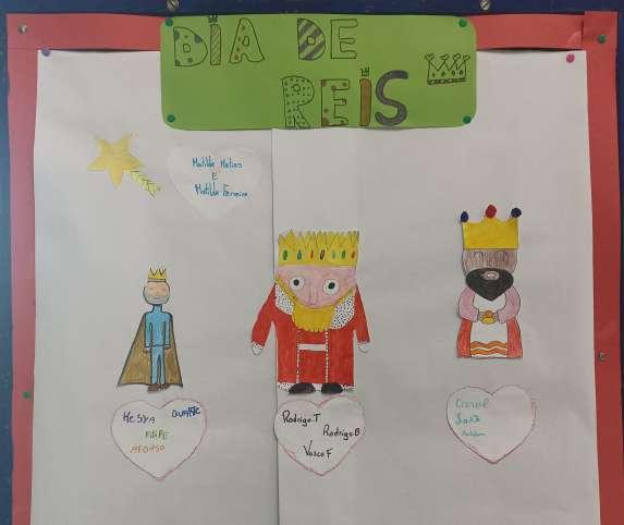 Neste dia, nós no nosso Espaço Juvenil fizemos uma atividade muito divertida. Começámos por nos dividirmos em quatro grupos, em seguida o desafio foi lançado pelos nossos Monitores, cada grupo tinha como missão desenhar um Rei Mago, tínhamos ainda um grupo encarregue de tratar da Estrela Cadente, para no final juntarmos os três Reis Magos e fazermos um placar. Então, quem fez a Estrela Cadente fomos nós (Matilde M. e a Matilde F.), o Baltazar foi executado por Carolina, o João S. e a Madalena. O Gaspar ficou a cargo do Rodrigo T., do Rodrigo B. e do Vasco. Por fim o Melchior, foi a Kesya, o Duarte, o Filipe C. e o Afonso. Nesta atividade fomos todos muito criativos, mas acima de tudo todos nos divertimos!