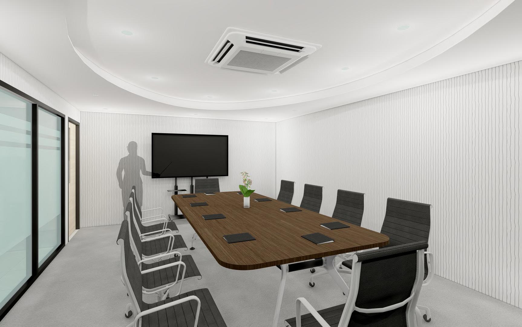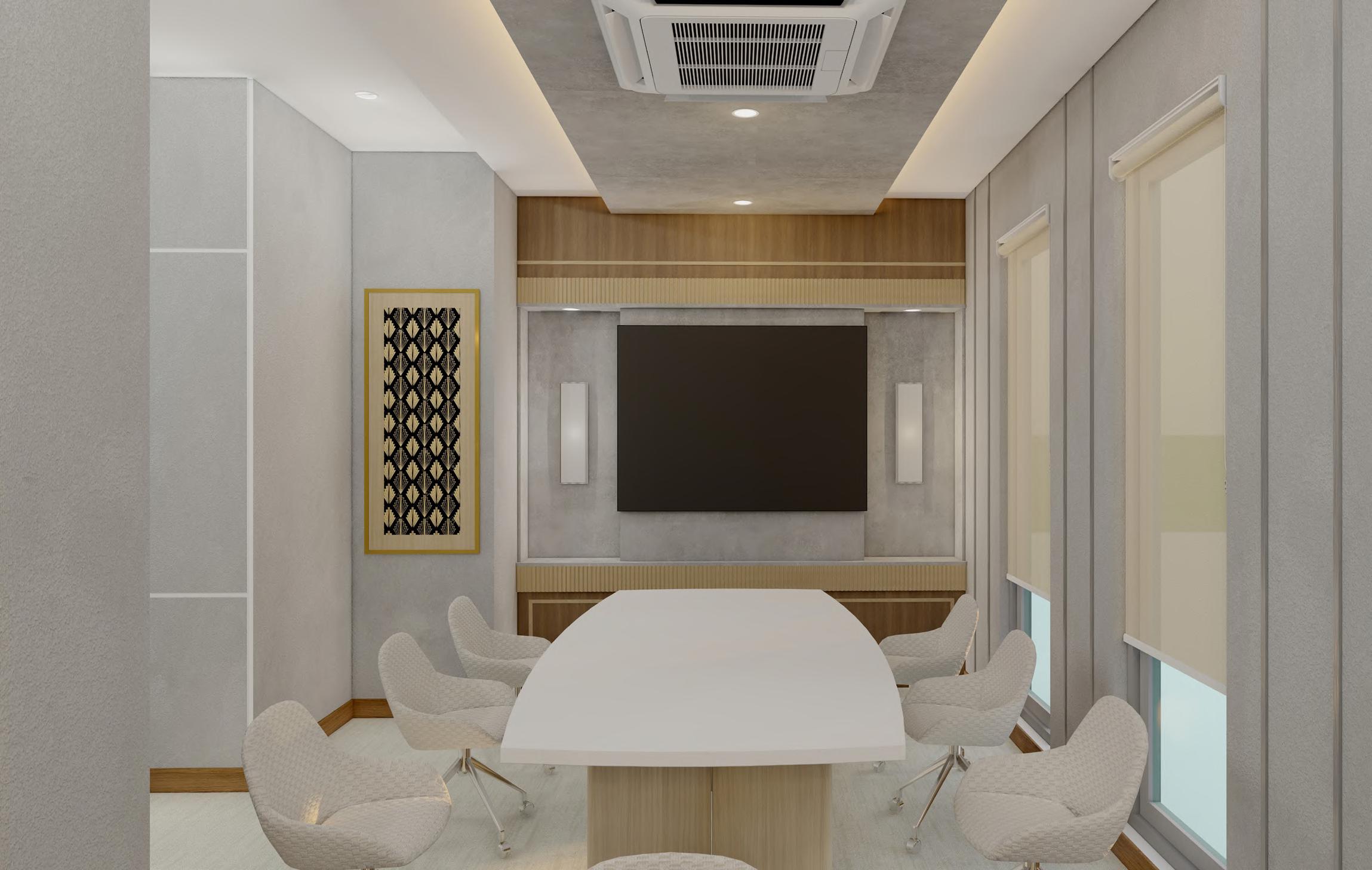 Meanwhile, the main meeting room concept emphasizes acoustic arrangements to keep the room from echoing. The design strategy involves combining acoustic boards on the ceiling with porous or textured wall designs.