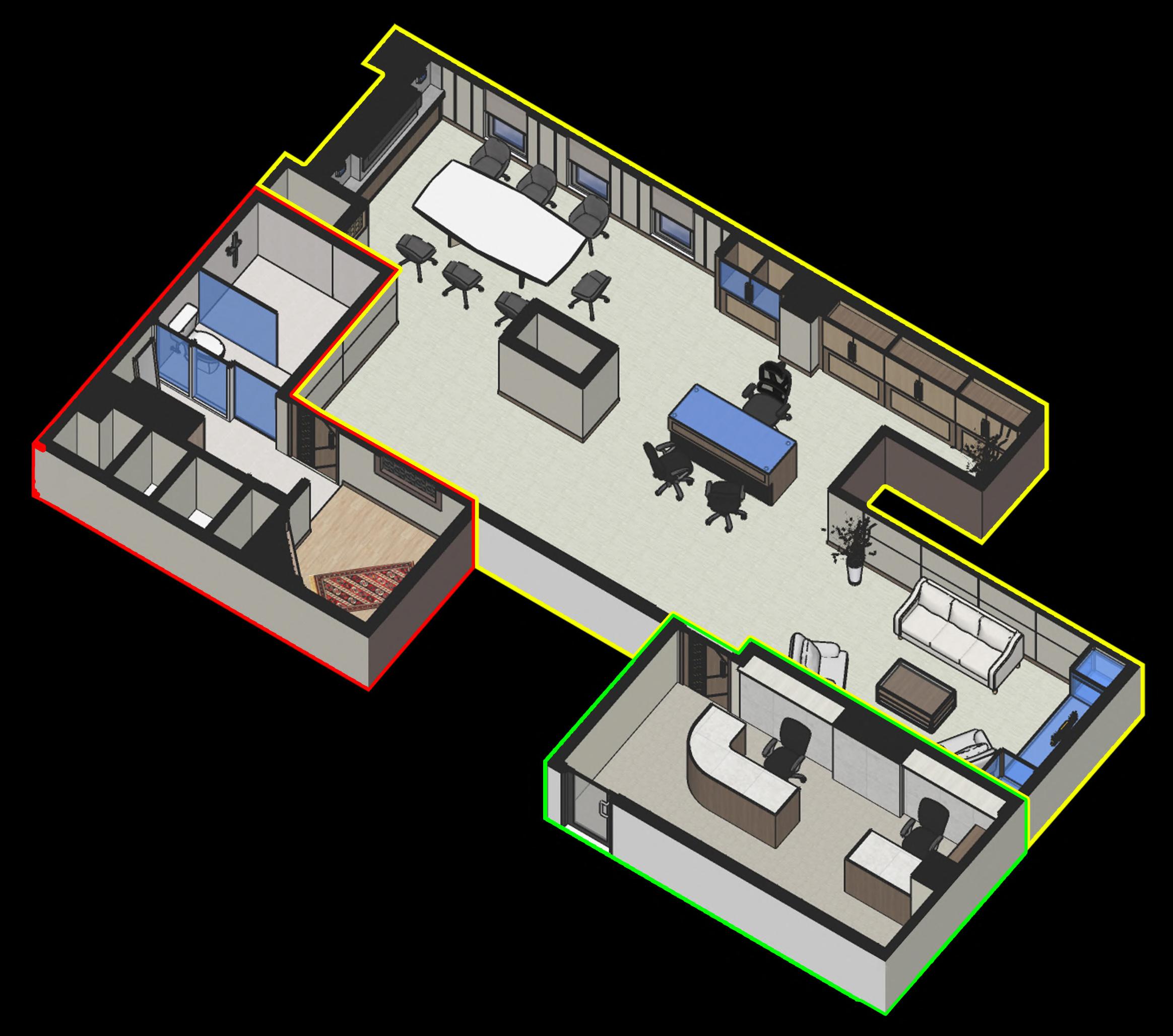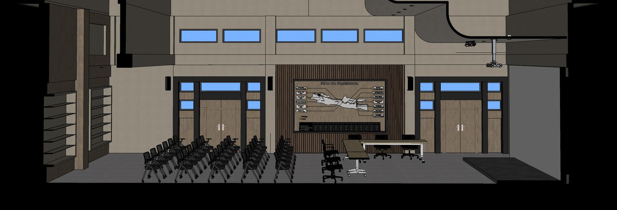 Determining the target audience point becomes important in developing the concept of this meeting room because it affects the design treatment of the area that will become the acoustic focal point of the room.