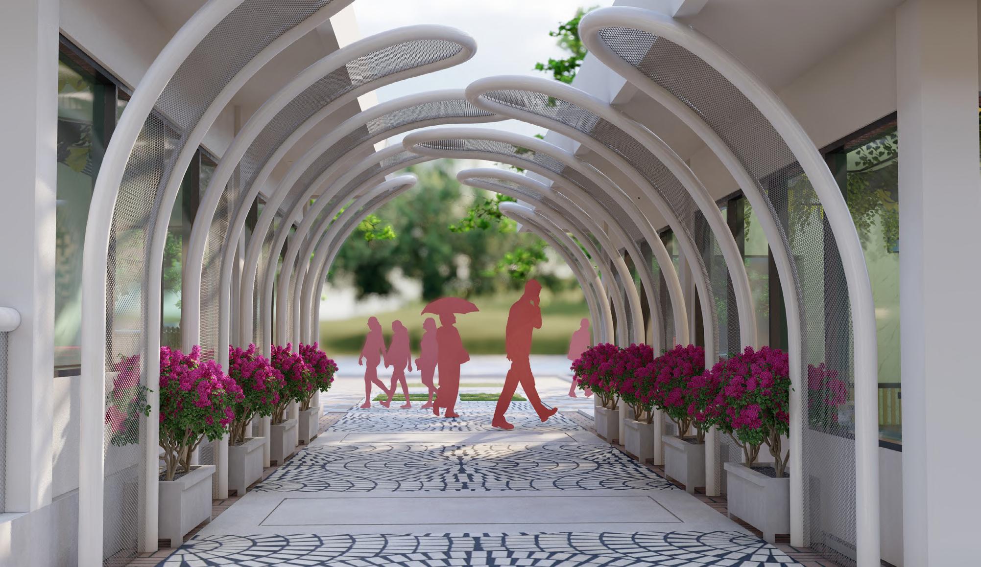 The corridor between the two toilet buildings is transformed into a pergola area, that connects both structures to enhance overall site connectivity. This corridor also links the main access points in the north and south.