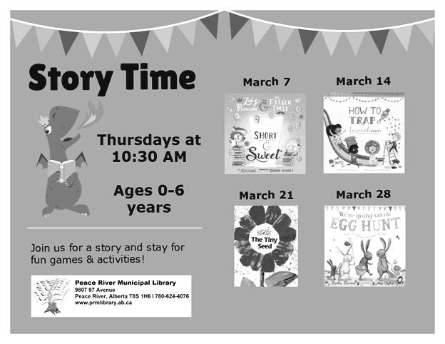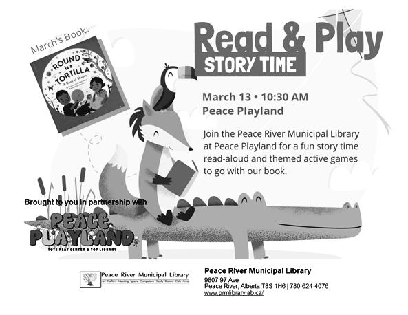 March 13th at 10:30am. Join the Peace River Municipal Library at Peace Playland for a fun story time read-aloud and themed active games.