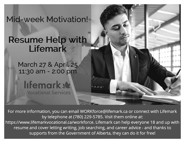 March 27th from 11:30am to 2pm. A Lifemark career counsellor will be available for help with resumes, cover letters, and job searches.