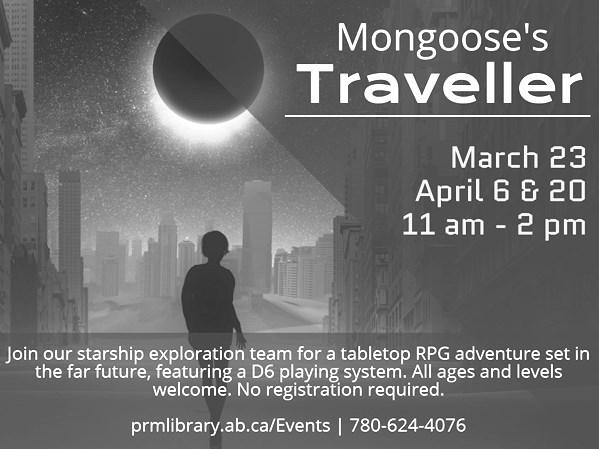 March 23rd from 11am to 2pm. Join our starship exploration team for a tabletop RPG adventure set in the far future, featuring a D6 playing system. All ages and levels welcome. No registration required.