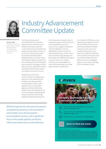 Industry Advancement Committee Update Simone Gallo APSAA Board Member & IAC member, National Manager Student Accommodation, Australian Catholic University
