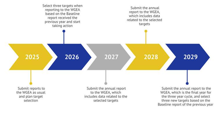 DSEs will be required to select their targets starting from 2026 The below image from the WGEA website shows the timeframe for the target lifecycle