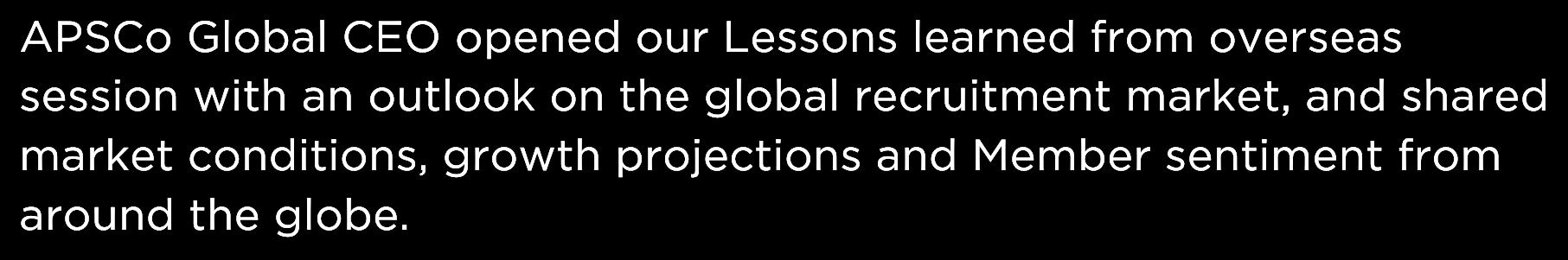 This quarter has been all about conferences for me. I've attended the Bullhorn conference in Sydney, the Talent X conference in Melbourne, and just last week, (saving the best to last) our own APSCo conference Each event featured different speakers aimed at different audiences, but a common theme emerged: we're in the thick of the cycle where the economic challenges are felt The response at all three conferences was a shift in focus toward business development and training.