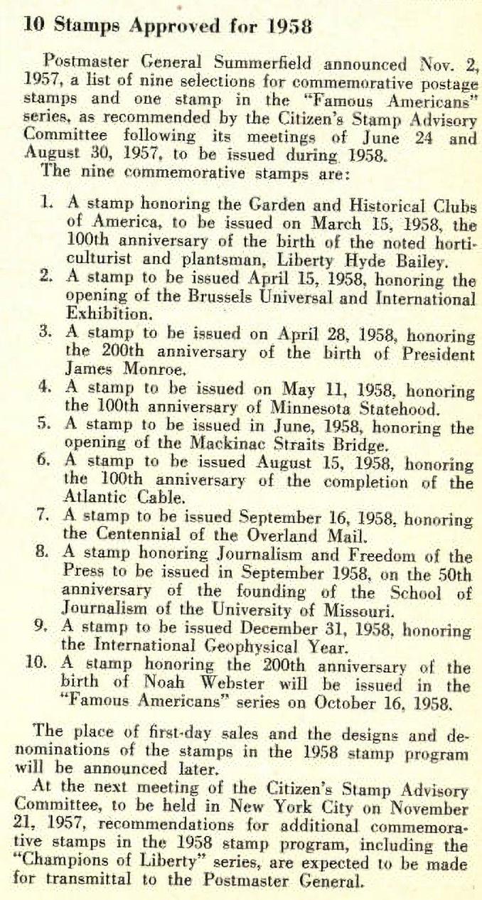 52 How an Idea Becomes a Stamp a brief introduction to the Citizens’ Stamp Advisory Committee by Nora Bryson