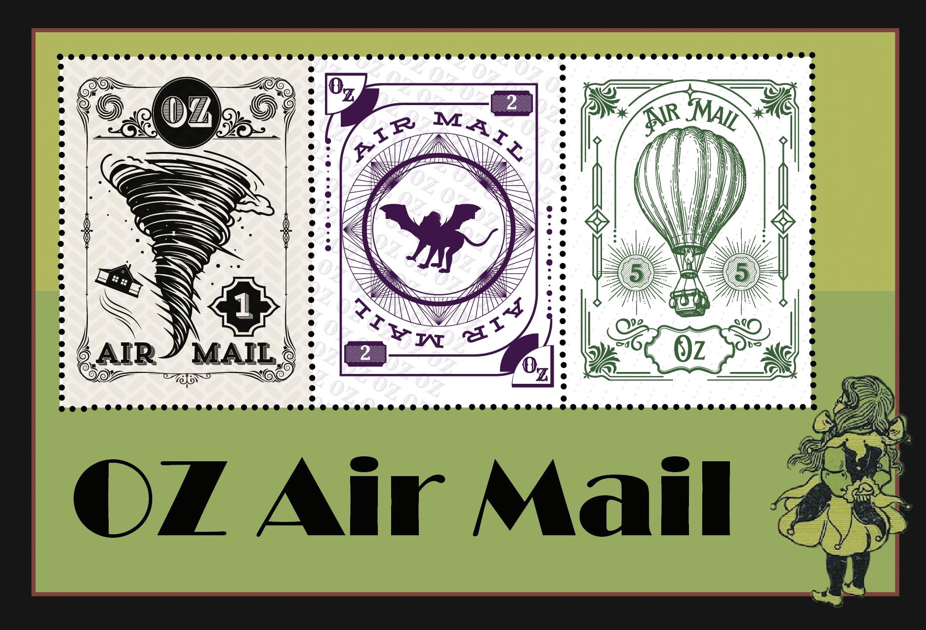 We went back and forth for weeks, tweaking the designs in our spare time. Too light, wrong color, off-center. In a creative haze, Nora B. also designed a souvenir sheet and an Oz postcard.