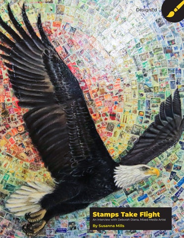 Afew months ago, Mark Shirey, a frequent flyer and volunteer at the American Philatelic Center, emailed me, “Have you met Deborah Diana yet?” Mark had met Deborah himself last year at the Central Pennsylvania Festival of the Arts (Arts Fest), when he noticed her artwork Air Male, a mixed media piece depicting an eagle, with spirals of stamps in the background. He and Deborah became friends, and he purchased the piece to donate to the American Philatelic Center. Her story is fascinating, Mark told me – be sure to meet her if you get the chance.