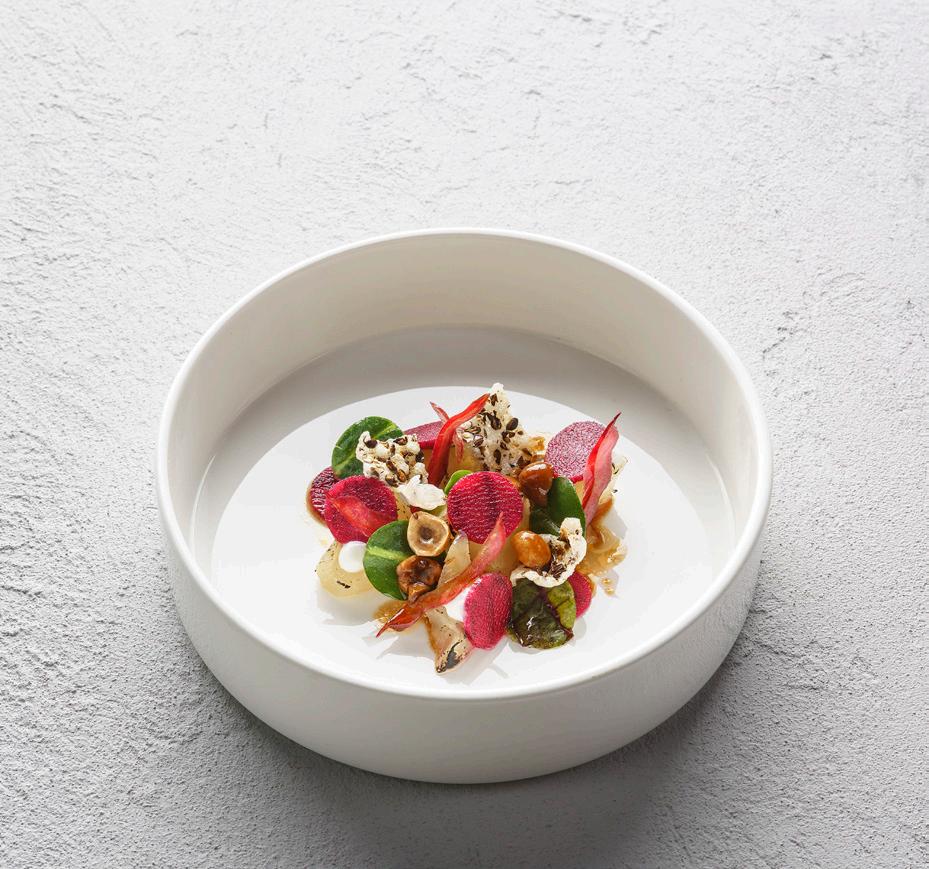 Designed as a versatile canvas for the creative chef, Brass White provides complete freedom for expression: from clean, minimalistic presentations to bold signature plates.