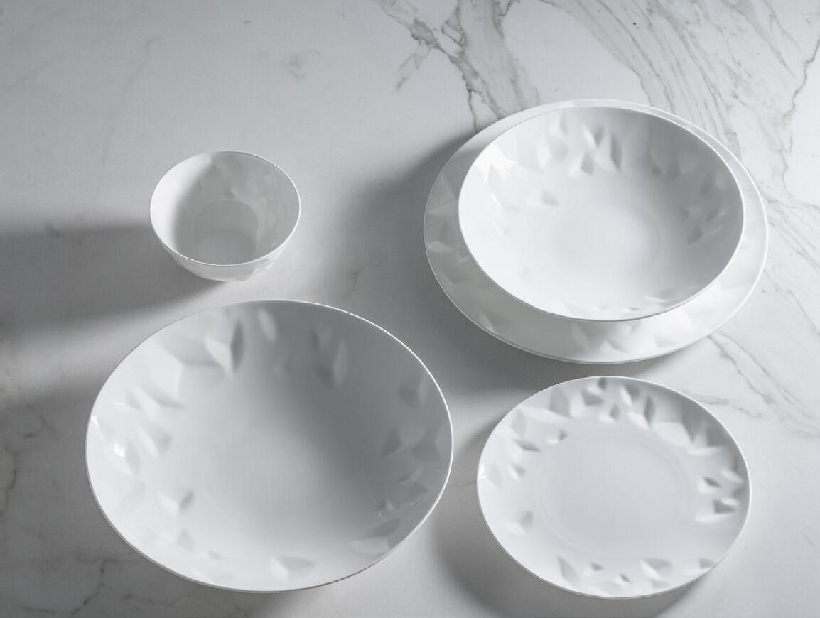 For the creation of its Facet collection, CHIC focused mainly on the importance of function and aesthetic values. Tactile characteristics fulfill the timeless designed items, giving them an extra dimension. The geometric shaped relief catches the light and creates an interesting play with shadows, causing beautiful effects that will highlight each dish served.