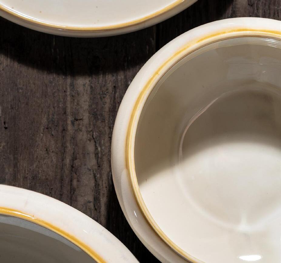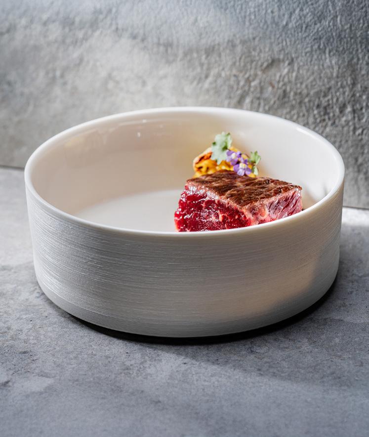 Arte is a true work of art in itself. The outer surface of each piece features a soft, matte hand-carved texture that creates a subtle and organic appearance. Inside, each piece is beautifully finished with a glossy glaze that enhances the colours and textures of your culinary creations. The contrast between the matte exterior and the glossy interior creates a visual highlight that elevates your presentation to new heights.