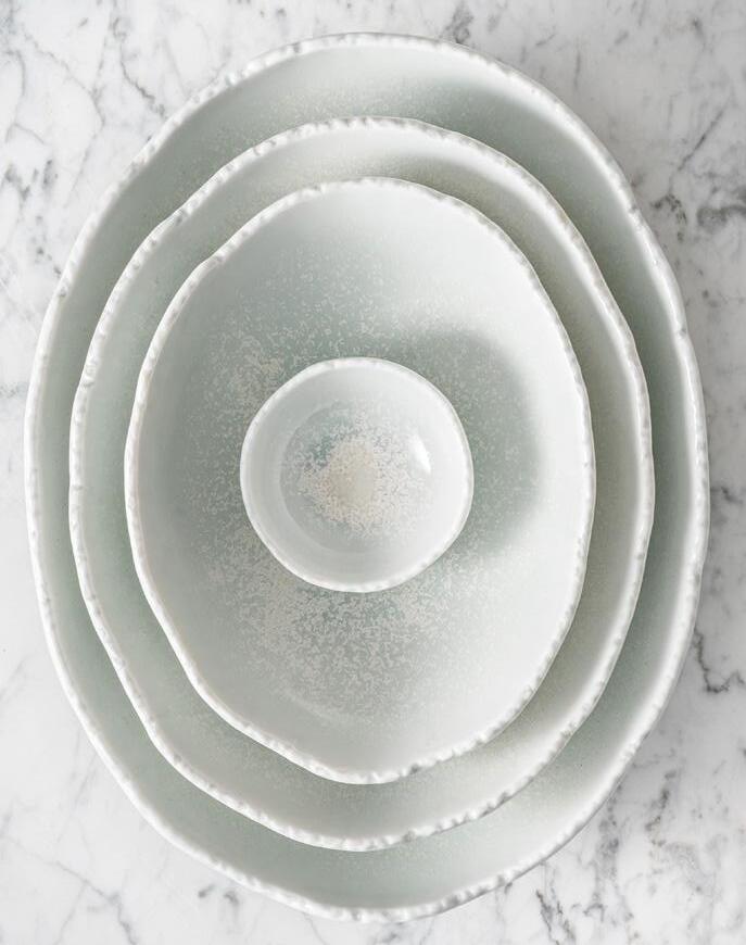 The serene colour palette of Ostra harmoniously combines a reactive glossy glaze on the inside with a matte finish on the outside. Crafted from durable porcelain, the collection is designed to endure a lifetime. Notice the soft colour on the rim of the dinnerware, carefully selected to accentuate its elegant round shapes. A key design objective for Ostra was to introduce a new timeless beauty to the CHIC portfolio.