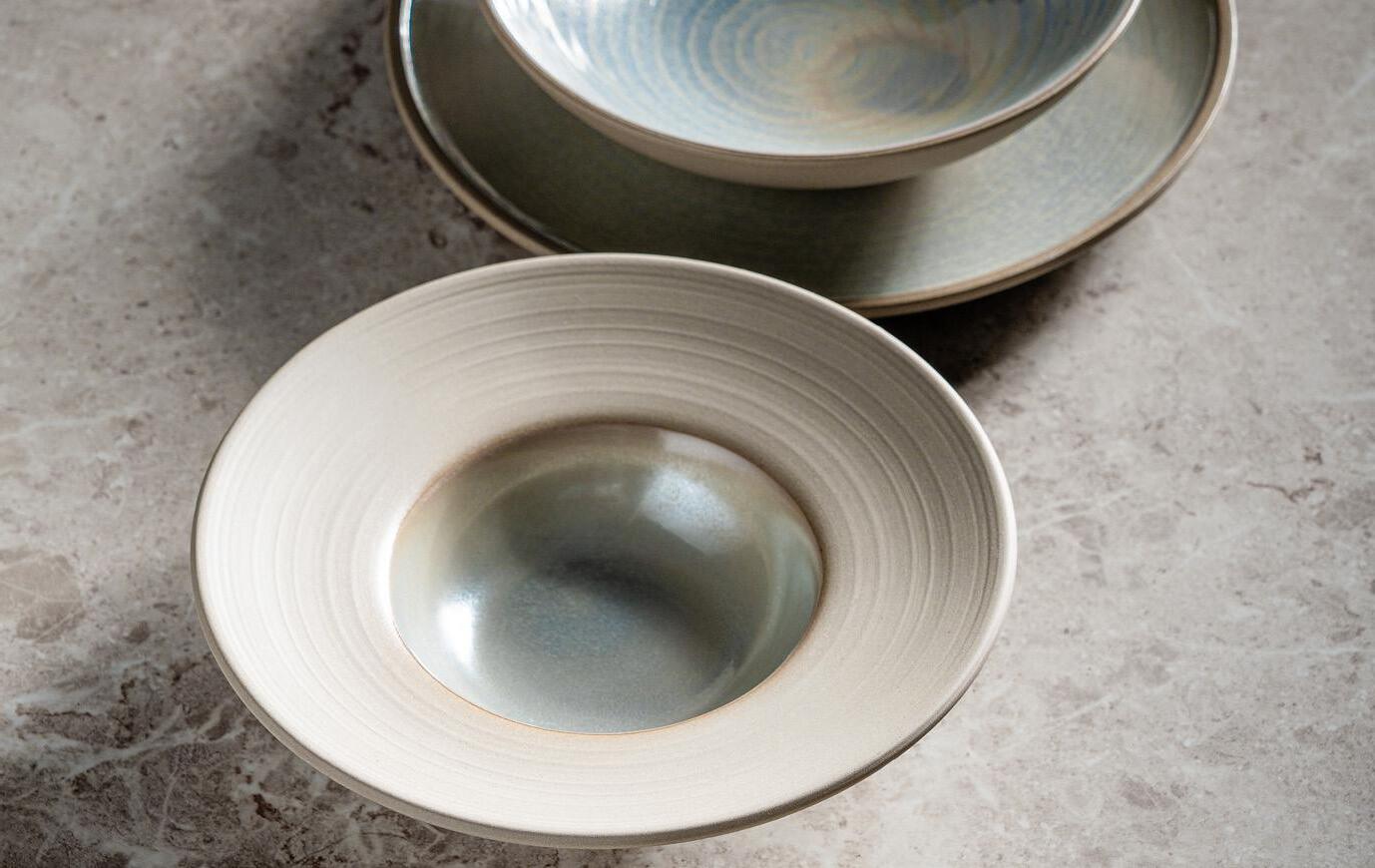 You can compare the effect of reactive glazes to snowflakes. No matter how many billions fall from the sky, no two are ever alike. Each snowflake has its own unique pattern, with an infinite number of possible shapes. The same principle applies to our tableware finished with reactive glaze. You’ll never find two exact copies, but within the same collection, they all share a common aesthetic.