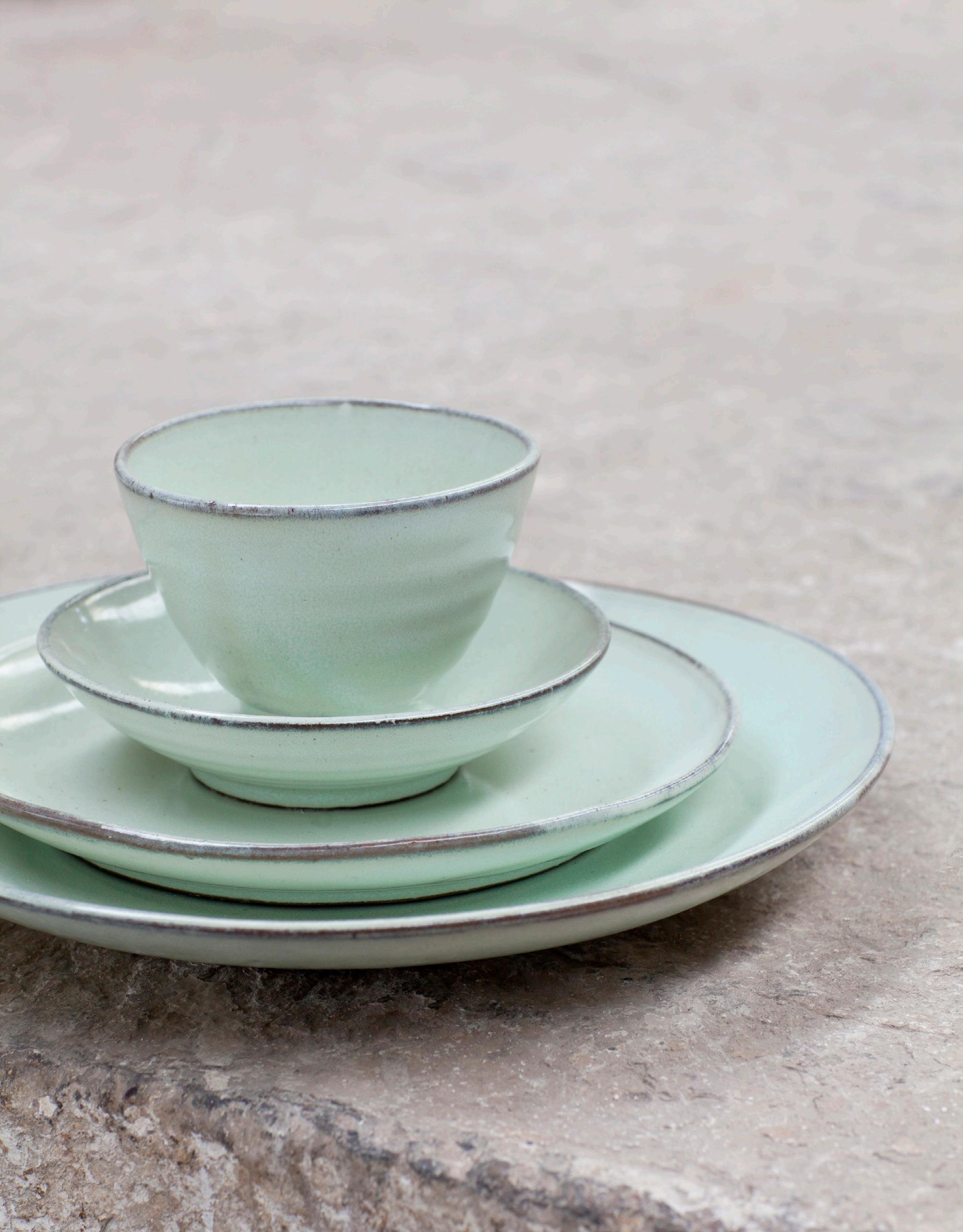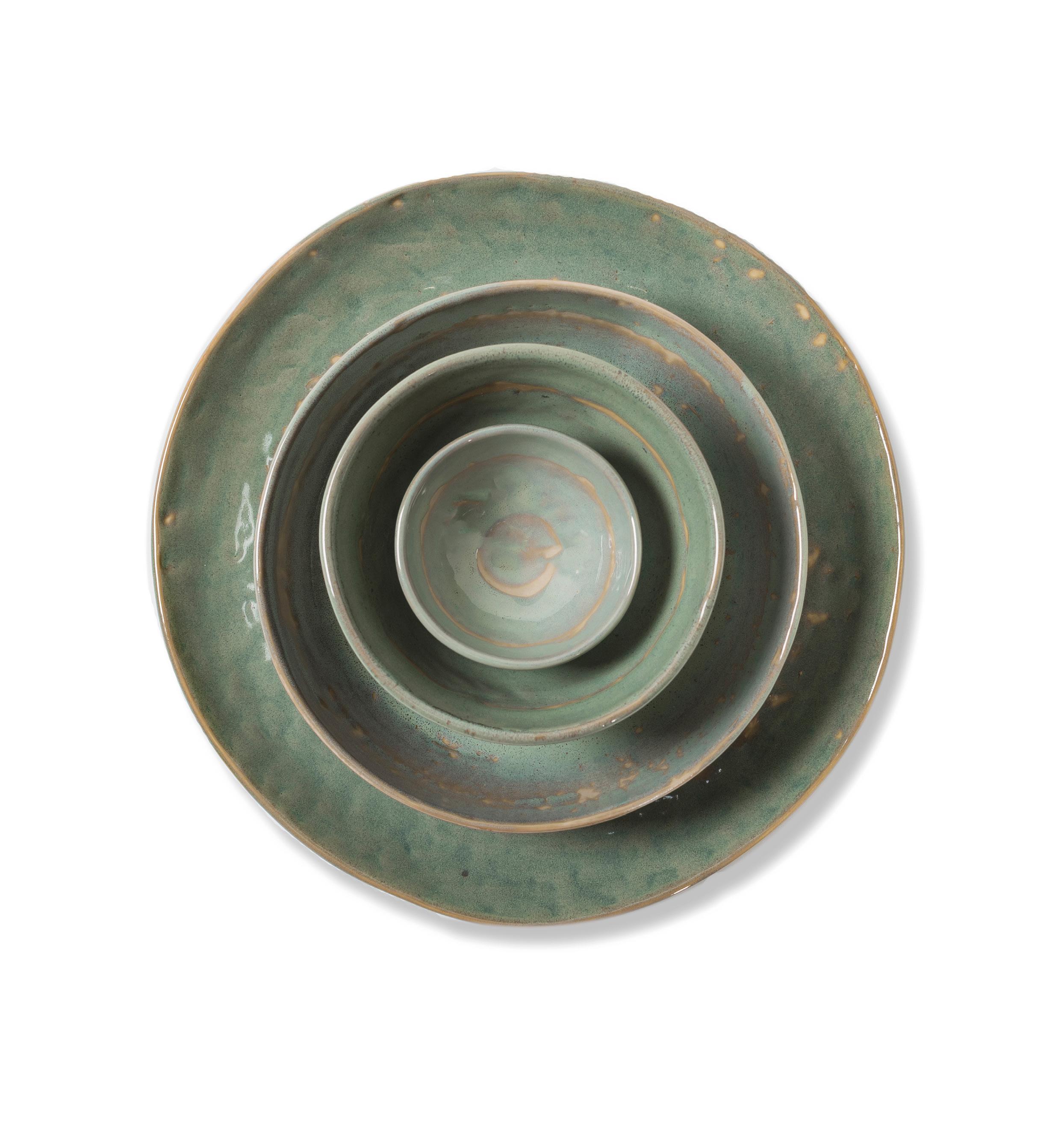 PLATE XS AZURE + ARTICHOKE GREEN B8921003G D16 H2 CM D6 1/4 H3/4 INCH Material: Stoneware Product Information: Food Safe - Microwave Proof - Dishwasher Proof