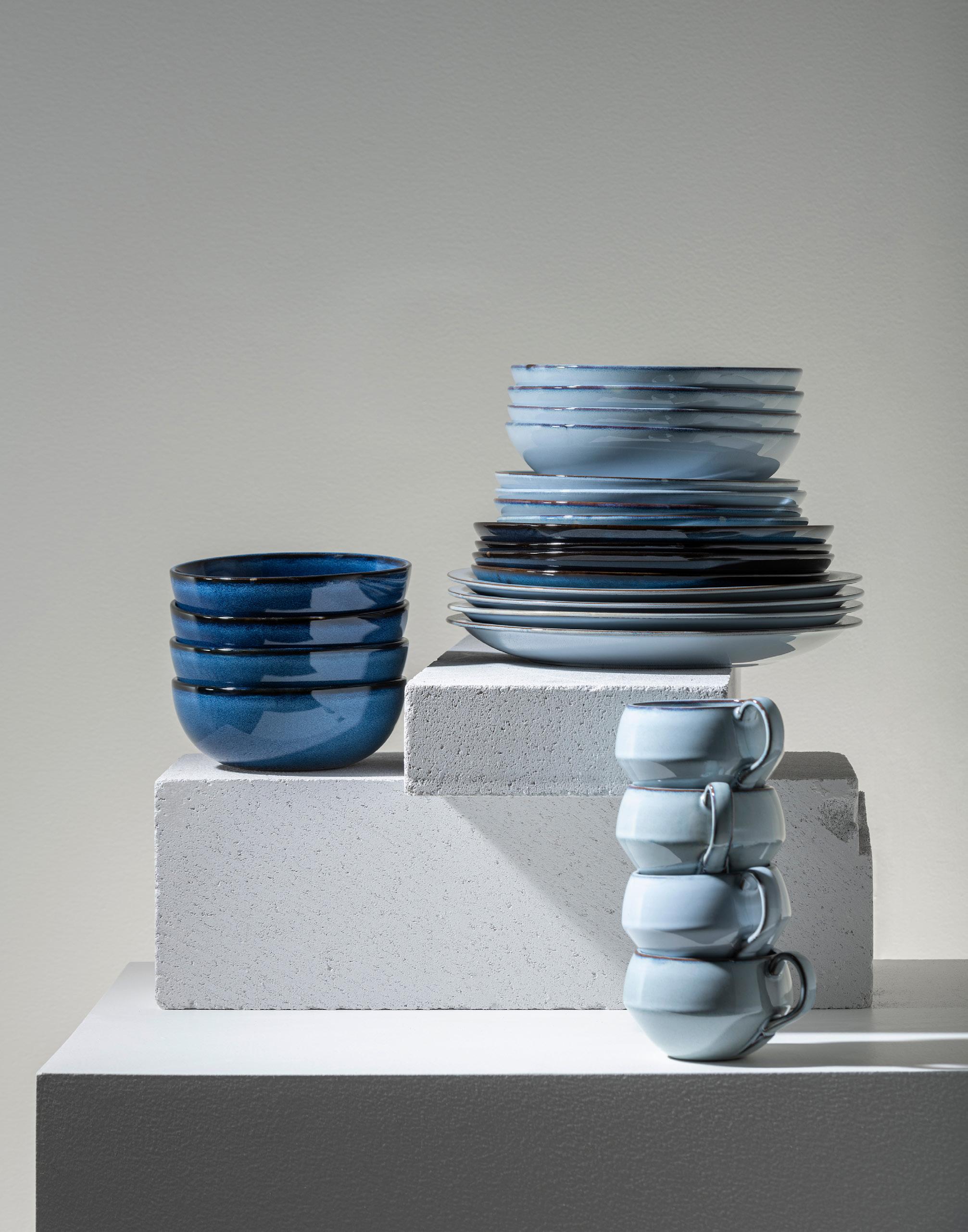Aqua, the artisanal stoneware collection transforms every table into a colourful tableau. The bowls and dishes, available in different sizes and three shades of blue, create a refreshing culinary perception. Aqua will add a fresh look and southern touch to your table and interior.