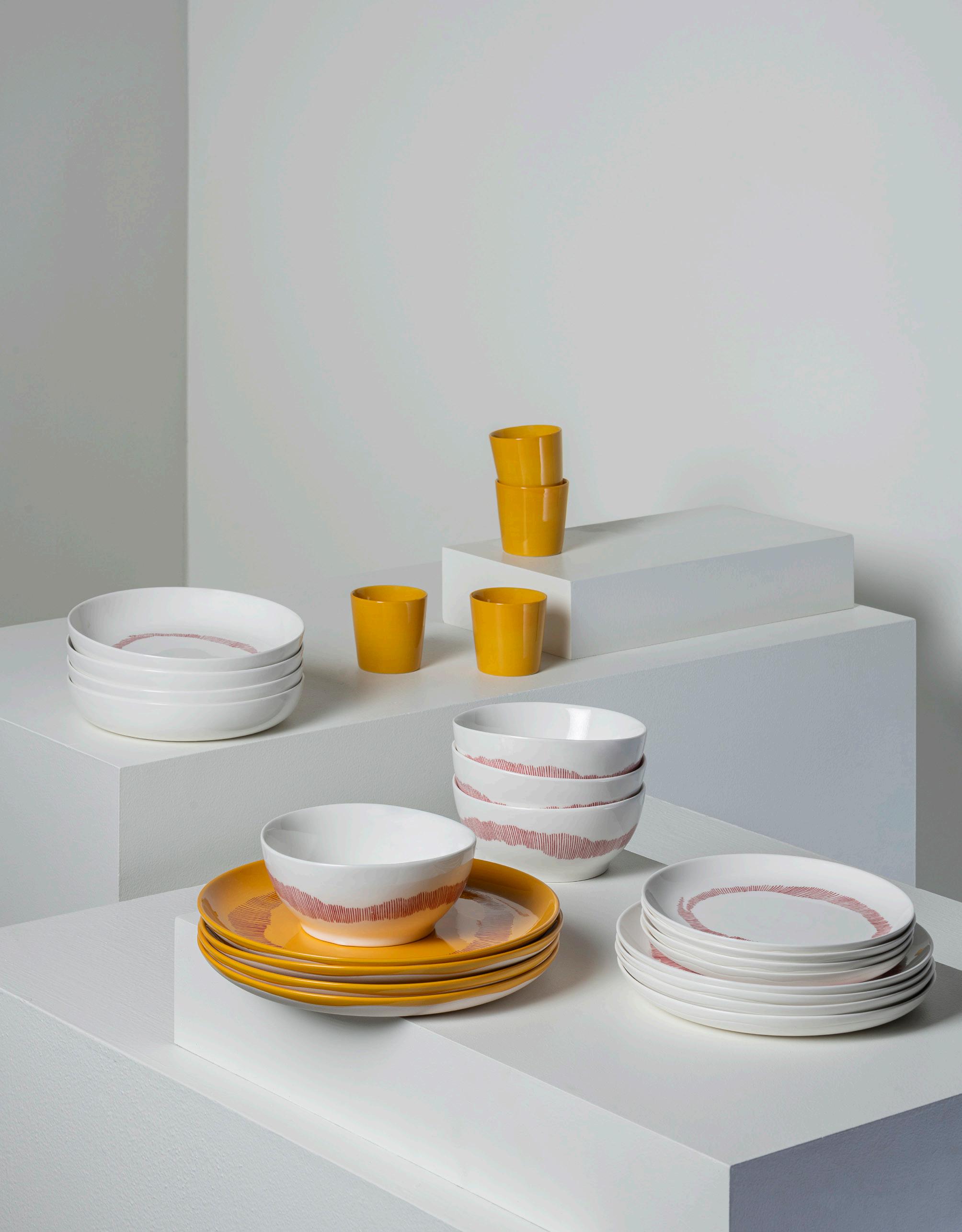 On this project the chef joined hands with Italian artist Ivo Bisignano. “Ivo is a good friend as well as a soul-mate for the creative process in all Ottolenghi graphics”, Yotam Ottolenghi states. “His art, in whatever medium, is honest, expressive, bold, joyful and colourful. Attributes we strive to achieve in our food.” The various sizes in plates, the vibrant colours and different patterns all evoke the typical Ottolenghi feeling of ‘outrageous casualness’. Of creating tables that are informal but very abundant, eccentric even, at the same time. “We have tried to tell the Ottolenghi story in objects. It is a story of the tension between the earthy and the sophisticated, between passion and refinement, tradition and novelty. Ostensible opposites, existing together in dynamic harmony”, Ottolenghi says. “This collection is a collaboration nourished by camaraderie and by the sharing of lovingly-made food around a beautifully-laid table. We hope you enjoy it as much as we do.”