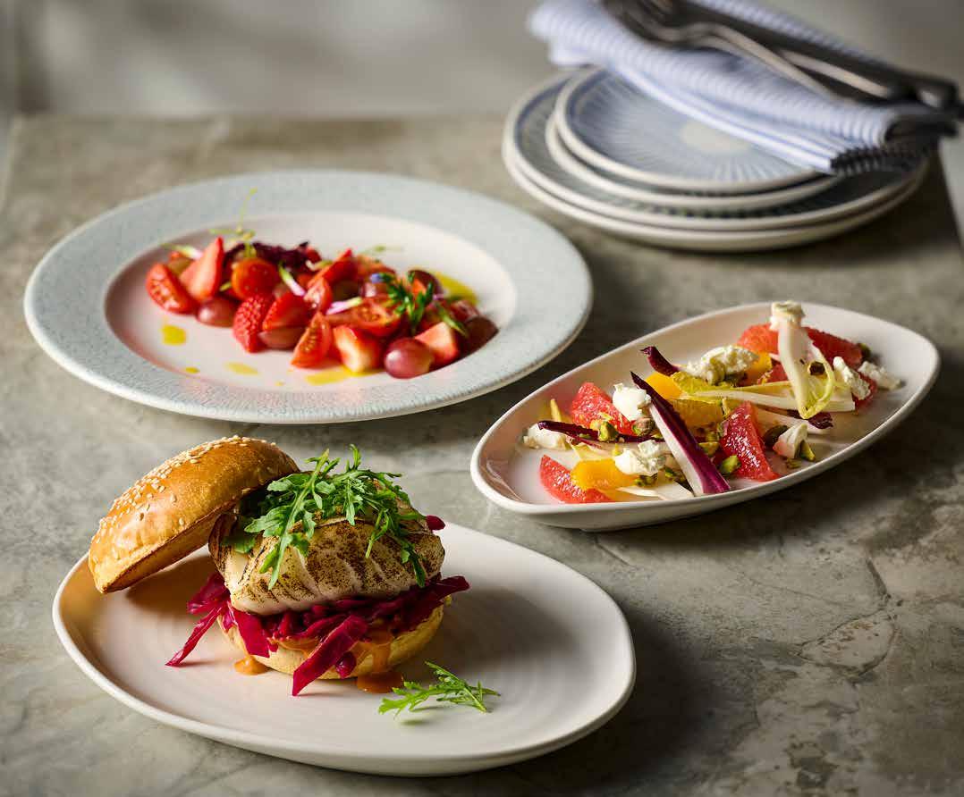 Contemporary and striking, the new Tide design draws its inspiration from the fluid and organic shapes of coastal landscapes. The balance of white space and reactive colour means Tide is perfect for premium food presentation and modern hospitality settings.