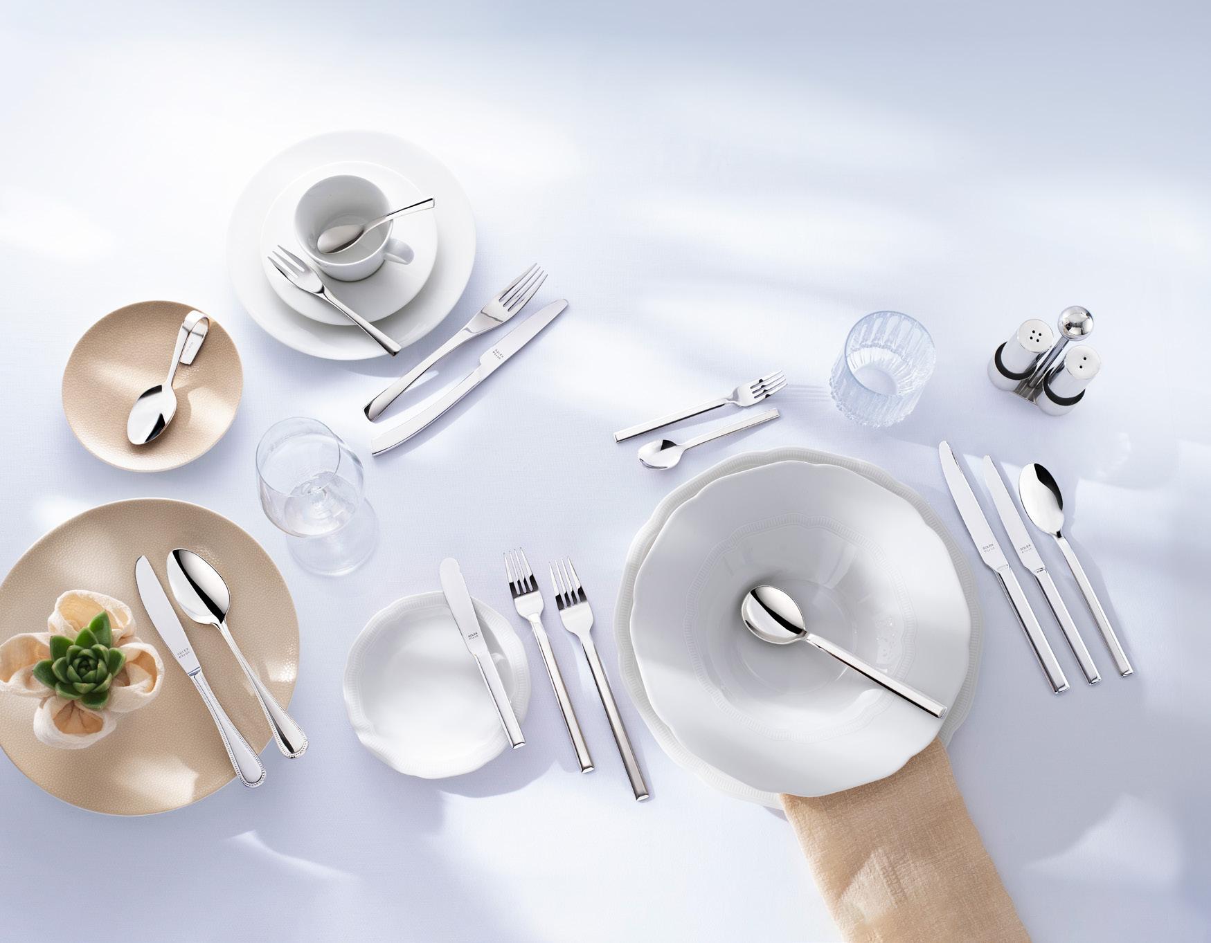 In addition to cutlery, we design products for the table and buffet. They impress with their function and form, are robust in everyday use, and stylish in detail.