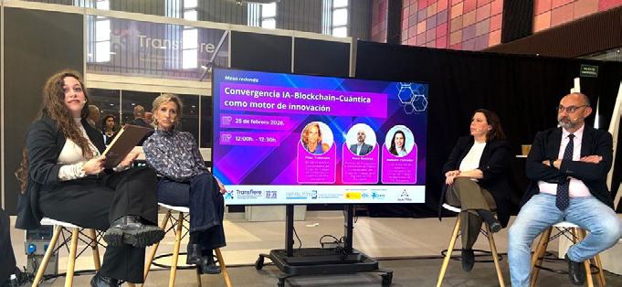 Por su parte, la plataforma DISRUPTIVE, impulsada por APTE y financiada por el Ministerio de Ciencia, Innovación y Universidades a través de la Agencia Estatal de Investigación, destacó su crecimiento superando los 900 miembros de 710 entidades y su intensa actividad en 2025, con 36 iniciativas orientadas a impulsar la transformación digital. En el marco del Foro, DISRUPTIVE también celebró la mesa redonda “Convergencia IA–Blockchain–Cuántica como motor de innovación” en el stand de la Agencia Estatal de Investigación en la que participaron: Elena García, coordinadora de proyectos en APTE; Pilar Troncoso, CRO de QCentroid y coordinadora del grupo de trabajo de computación cuántica de DISRUPTIVE; Paco Benítez, director de Prospectiva e Innovación de Fidesol y coordinador del grupo de trabajo de IA - Big Data de DISRUPTIVE y Daniela Corredor, COO & Dircom de Alastria y coordinadora del grupo de trabajo de Blockchain de DISRUPTIVE.
