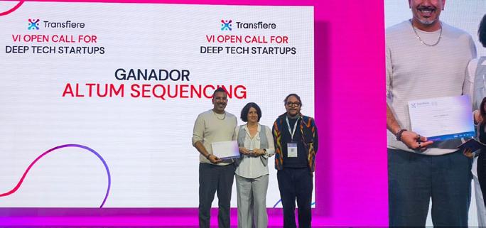 En el marco de Transfiere 2026, también se ha puesto en valor el talento emprendedor de los parques científicos y tecnológicos miembros de APTE con el reconocimiento a Altum Sequencing, startup adherida al programa de incubación del C3N-IA del Parque Científico de la Universidad Carlos III de Madrid, que ha resultado ganadora del “VI Open Call for Deep Tech Startups”. Durante el Foro, su CEO, Marina Planas, presentó ante el ecosistema Deep Tech su innovador test no invasivo orientado a salvar vidas de personas afectadas por cáncer. Esta convocatoria, coordinada por EEN Madrid, permitirá a la startup ampliar su visibilidad y posicionamiento internacional. La directora del Parque Científico de la UC3M, Ana Acebrón, acompañó al equipo en la recogida de este reconocimiento.