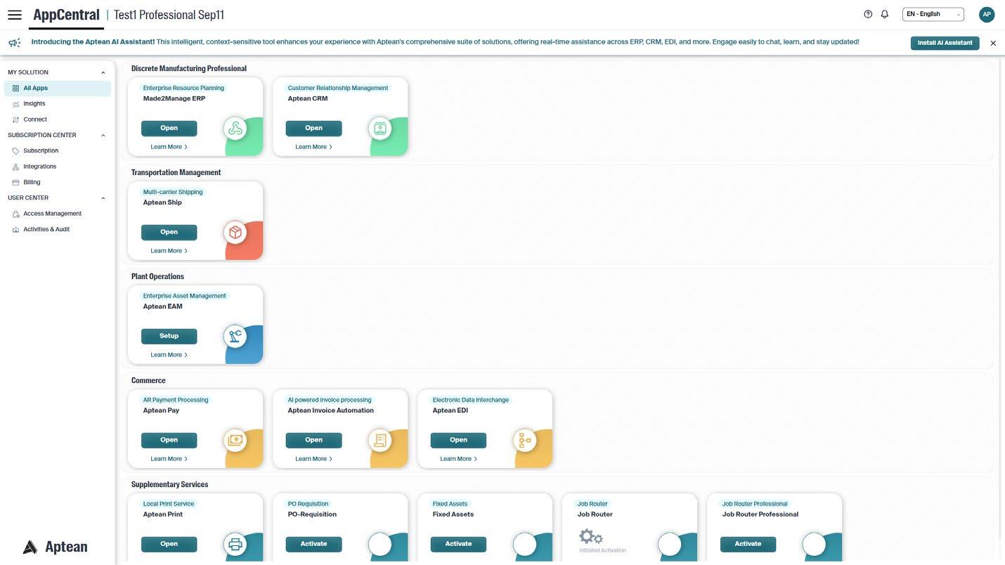 Browse and learn more about available Aptean applications. Users can explore key features, view documentation and discover new tools to support their business.