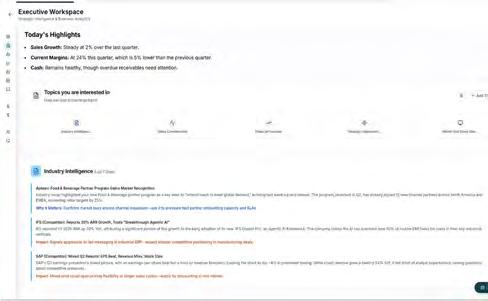 Enable all staff with an AI-first, role-based workspaces that offer daily digests, naturallanguage Q&A and instant drilldowns. Get a live pulse of your business and one-tap delegation to move decisions forward— anytime, anywhere.