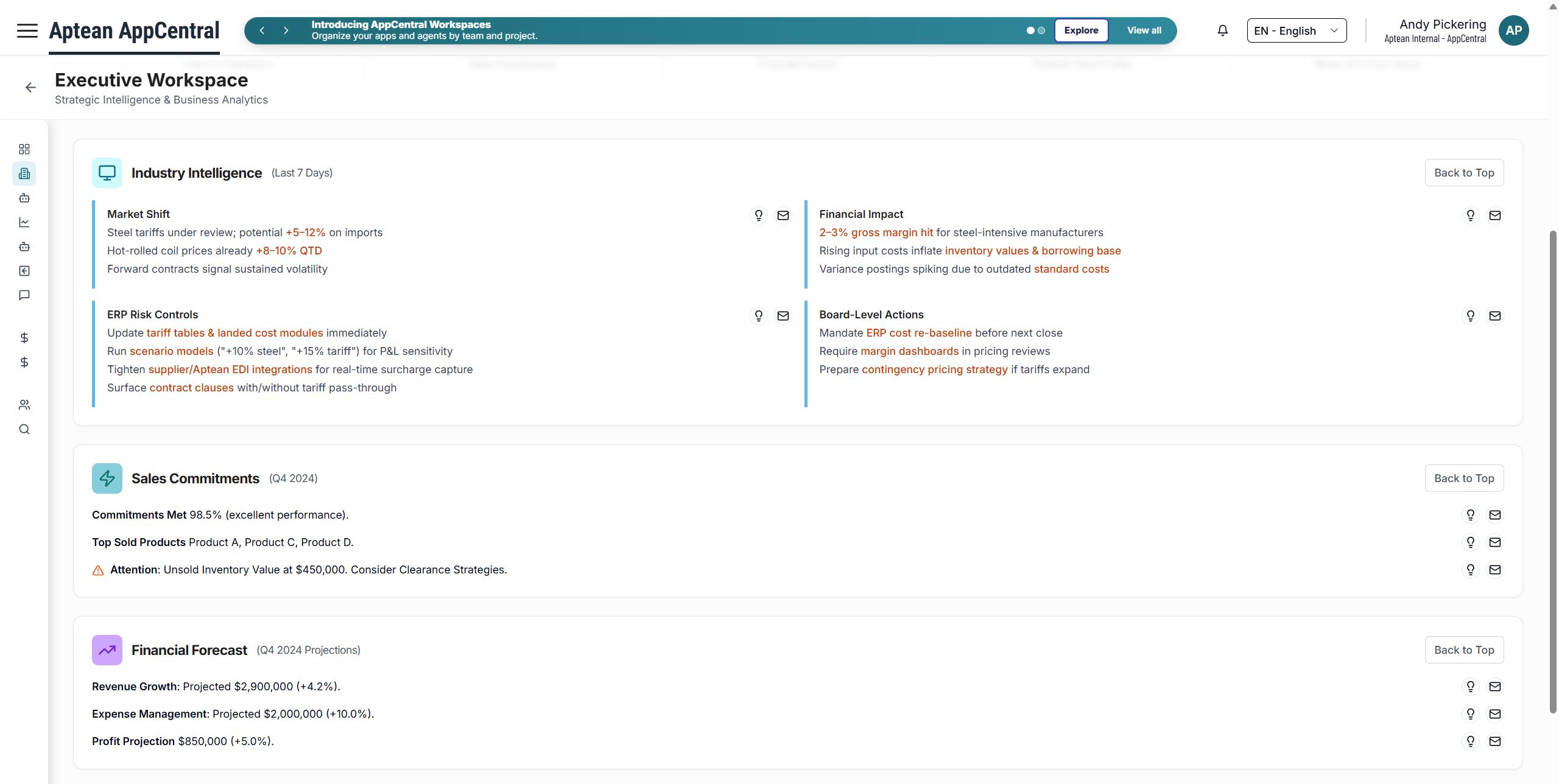 Want to learn more about Role-based AI Workspace in AppCentral? Contact Us at info@aptean.com or visit www.aptean.com.