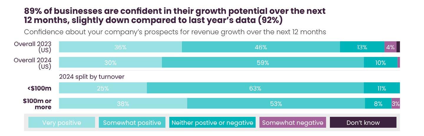 Despite economic headwinds, more than two-thirds of U.S. enterprise subscription businesses have experienced modest subscriber growth (up to 20%) in the last 12 months and 89% are confident about their revenue growth potential for the year ahead.