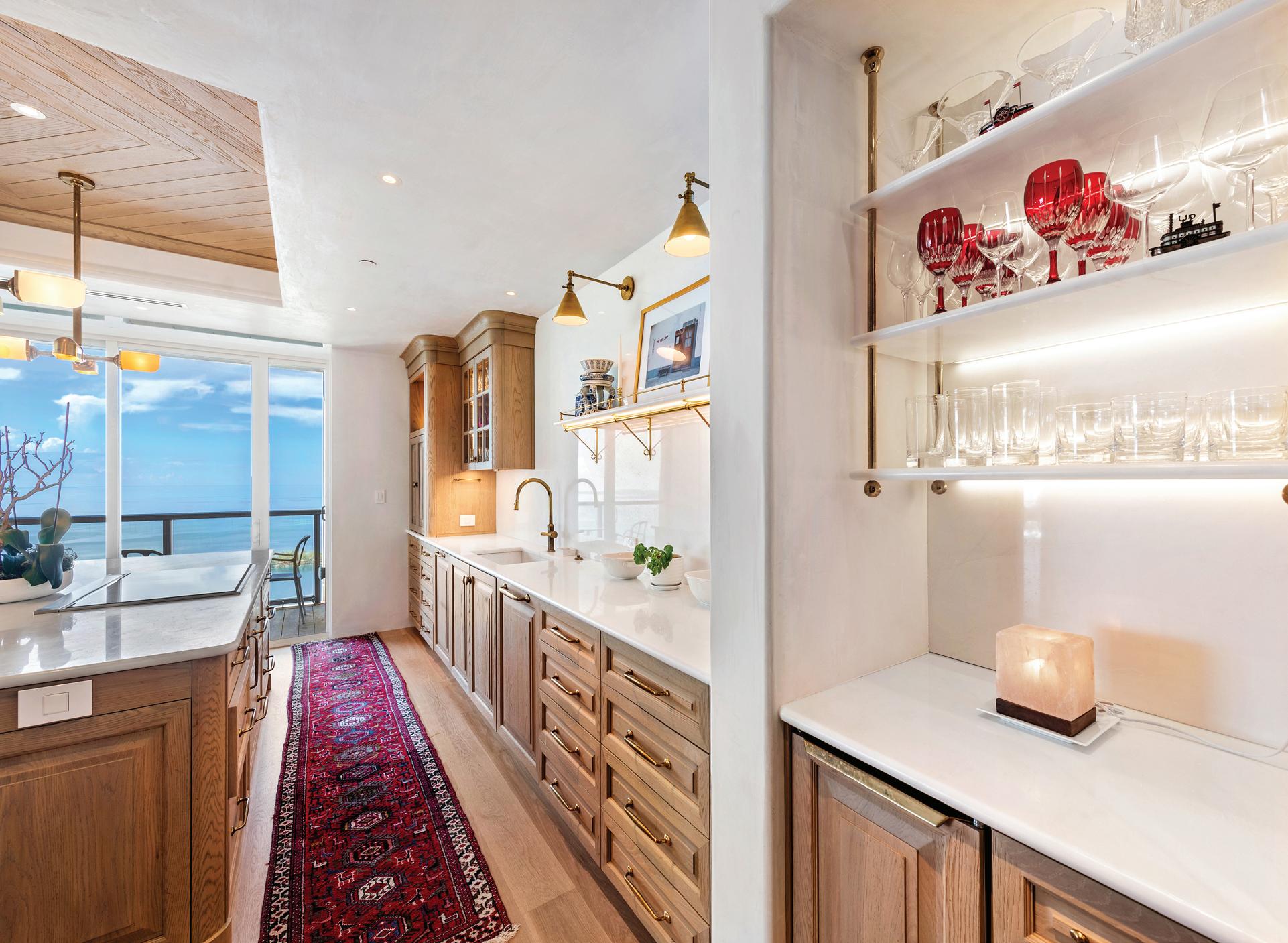 Custom wood paneling, pantry with extra shelving, bar nook and large utility room provide functionality to CasaCielo’s exqusite form.