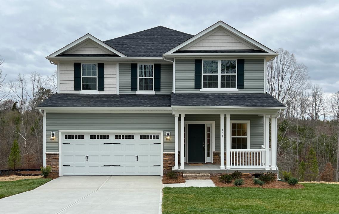 Calico Ridge offers 1 and 2-story homes with distinctive Craftsmanstyle exteriors featuring welcoming front porches and stone and brick accents, with a tranquil coastal vibe. Enjoy the planned pool, tot lot and walking trail amenities while being located minutes from Matthews and Monroe. Our model home is open daily.