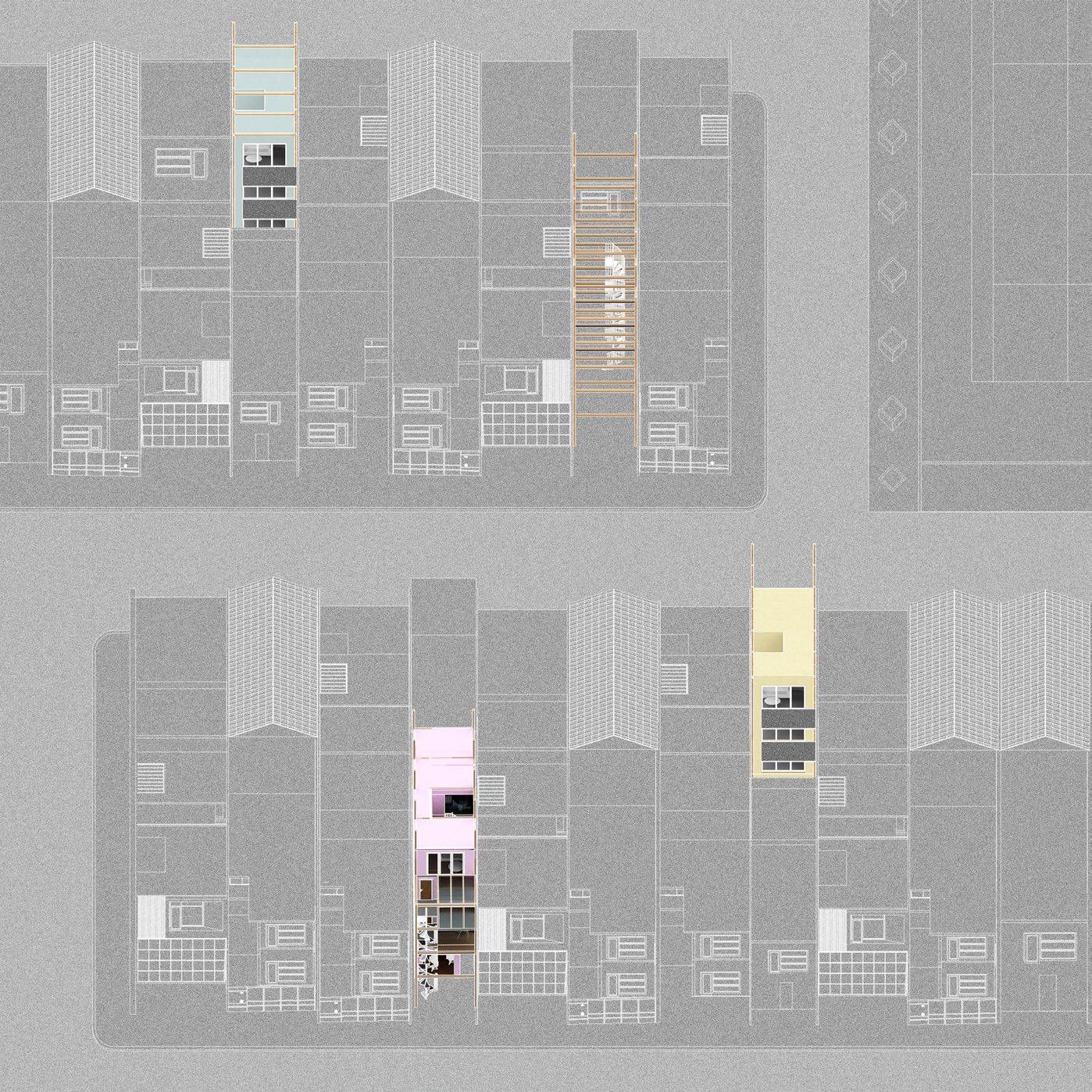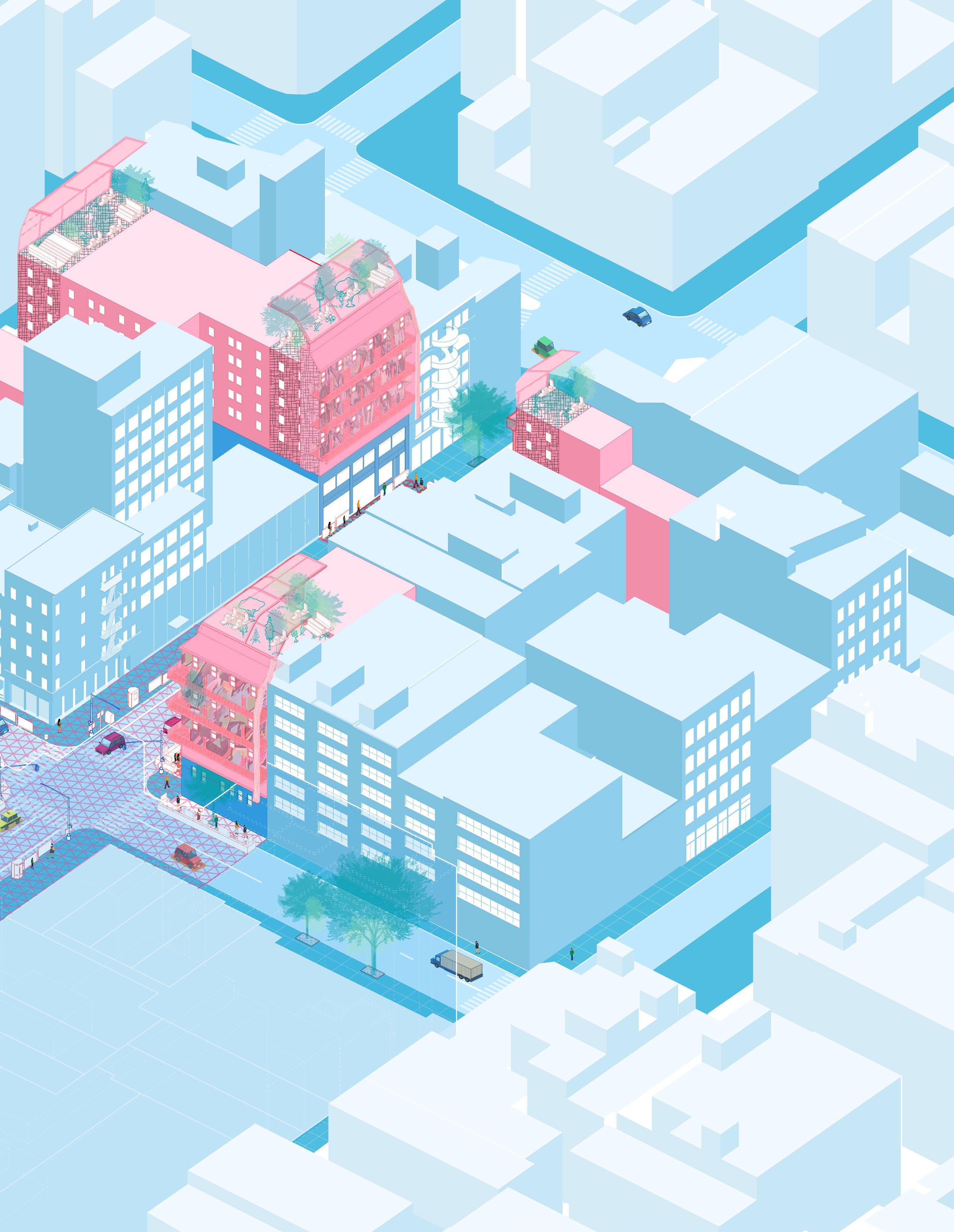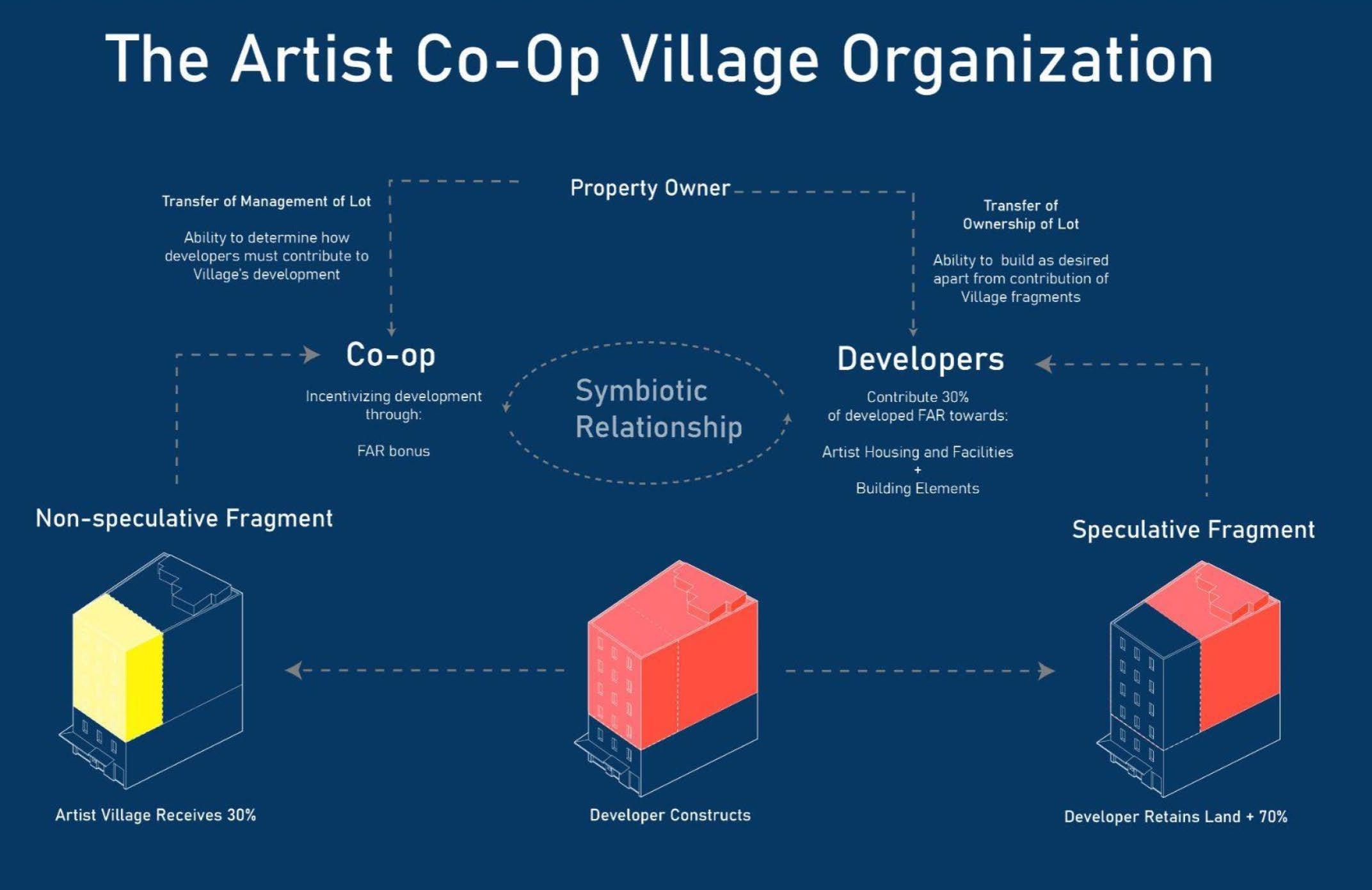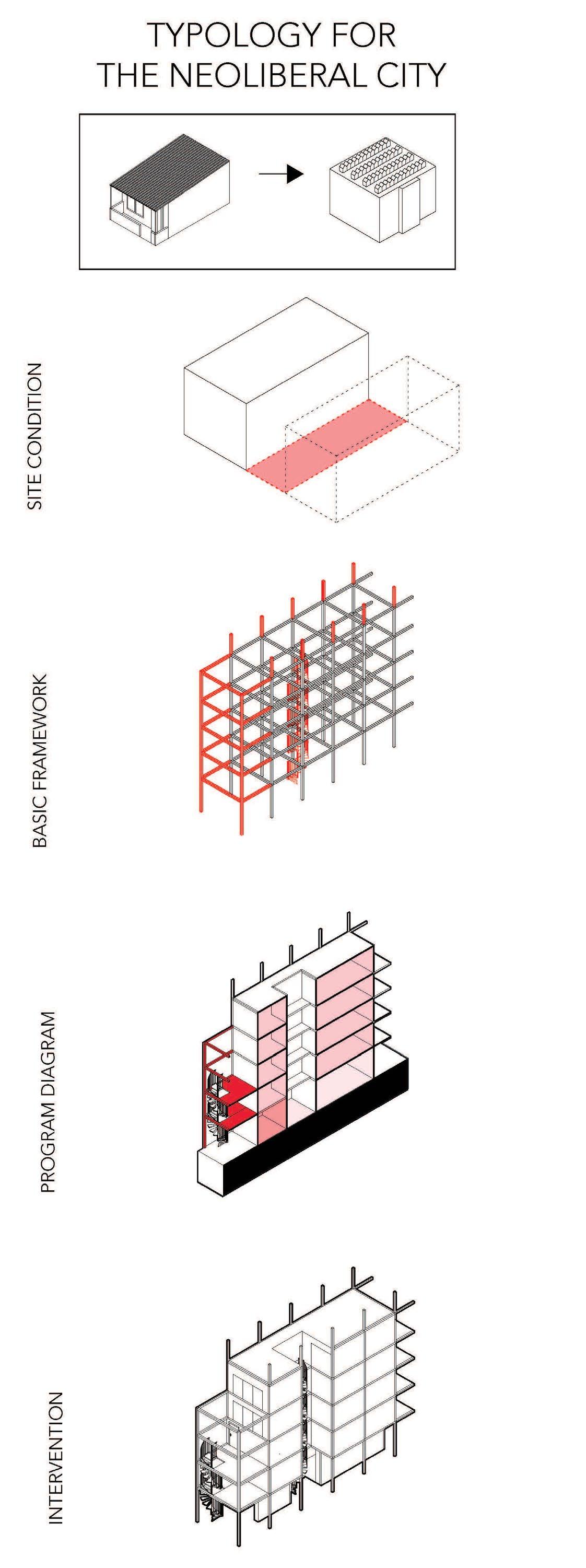 Existing in the rapidly urbanizing but extremely inclusive SoHo, the project exist as an urban proposal to decommodify SoHo. SoHo used to be an artist hub home to many artists, however throughout the years the dynamicness of SoHo has faded away to a scene of luxury housing and retail stores. The project proposes a kit-of-part that invites the artist and arts inclusively back to SoHo, through a proposal of an affordable artist coop, that includes programs that accommodates artist collectiveness, art decommodification, bringing arts to the public, as well as flexibility and adaptability. The project considers financial considerations and market forces, and proposes a non-speculative artist housing co-op that is community organized through incentivizing the speculative market-development. The project also carefully considers SoHo’s nature as a historical site, and merges the importance of preservation of SoHo built and intangible histories as well as the need for SoHo to evolve and develop and allow others to also co-write the future narrative of SoHo.