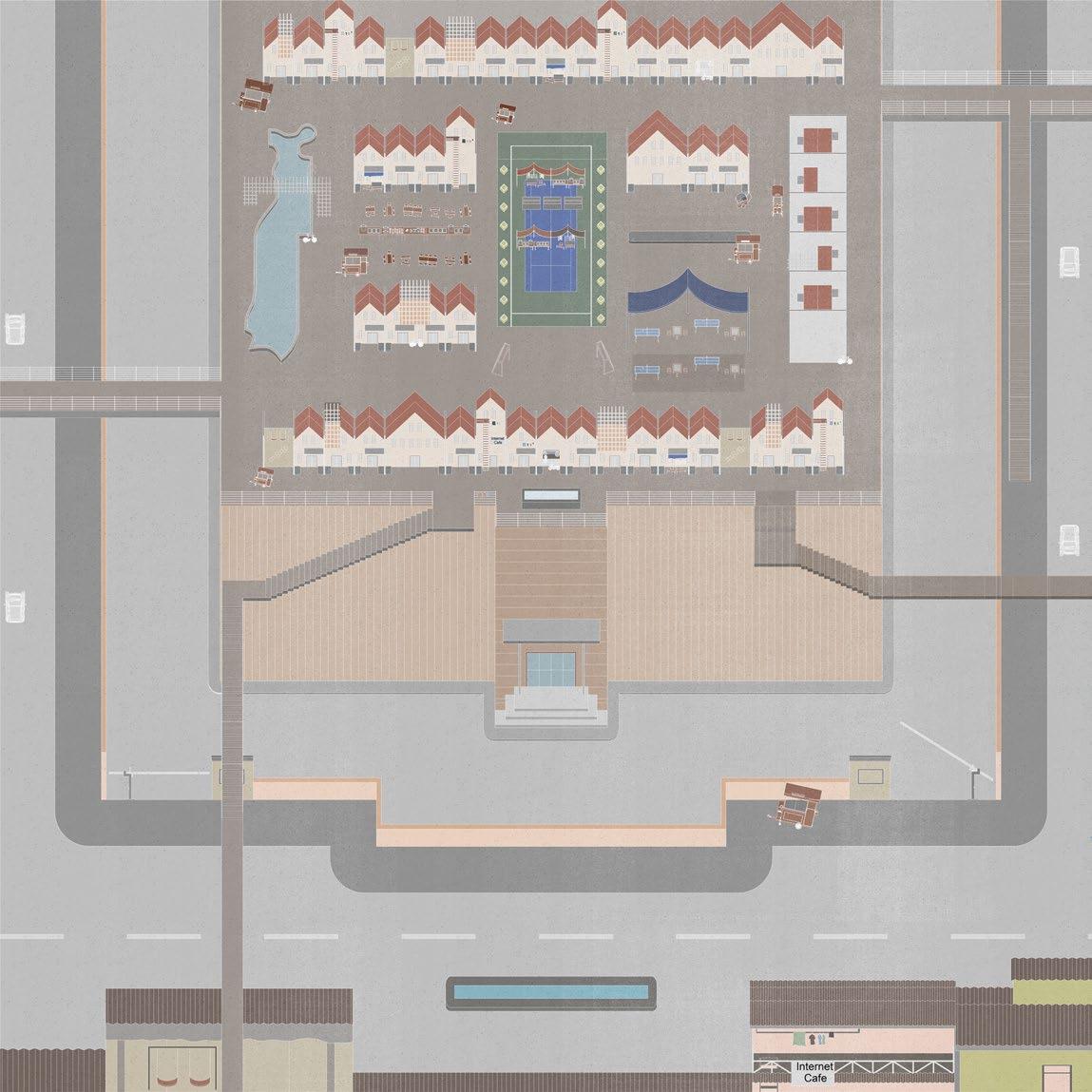 Existing in one of the poorest area, the prompt challenges to create a public space that blurs the private notion of properties. The site is located in an intersection between important local institutions, such as a park, a community garden, a middle school, a peacemaking center, and several refugee aiding institutions. After identifying these adjacent organizations, it was understood that it was important to create program that not only becomes a medium of connection, but also reactivate the existing important adjacent institutions. The project exist as a greenhouse that integrates program of play and sports institutions for the youth, refugee consultation services, using food sharing as a peacemaking activity, as well as a hydroponic garden and a vegetable market that would enhance a means of collective responsibility and also enforces the idea of ownership and authority that may a lot of the time be lost for New Americans. The ground floor exist as a public space where these exchanges can happen simultaneously and create a social exchange.