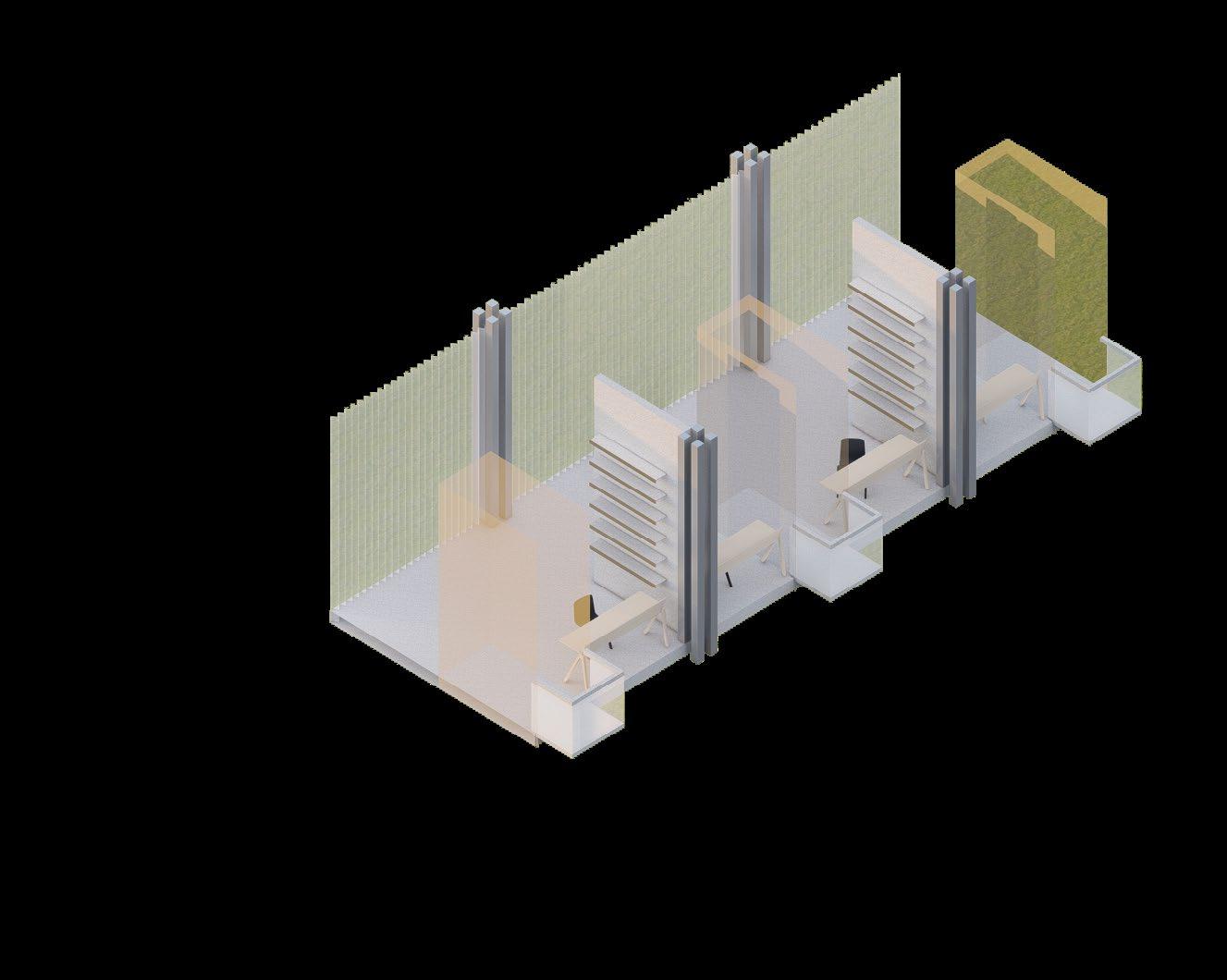 During our study abroad, we became fascinated by the prominence of the garden squares in the city and how they became a fundamental archetype in creating public and walkable spaces that improved quality of life. We were interested in allowing participants to live, work, learn, and study right surrounding the garden square. At the same time, coming out of the year-long isolation period, where work, study, and life were blurred, we decided that it was important for us to create a space where we can separate these different functions and activities, but are connected by a series of screens.
