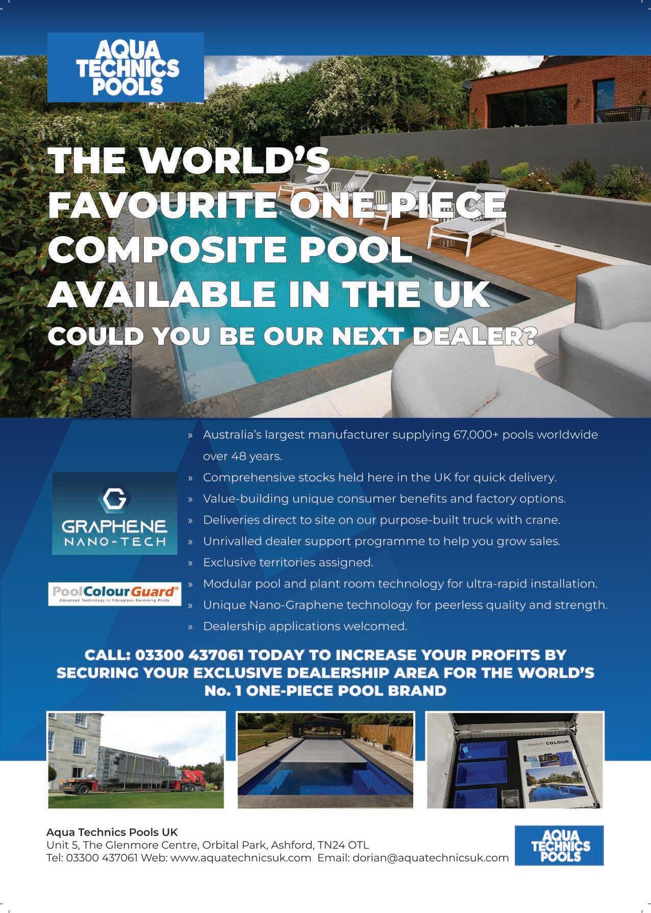 Aqua Publishing Ltd accepts no liability for any insert, display or classified advertisement included in Swimming Pool News. While every reasonable care is taken to ensure that all advertisers are reliable and reputable, Swimming Pool News can give no assurance they will fulfil their obligations under all circumstances. The views expressed in the articles in Swimming Pool News are the contributors’ own. All rights reserved. Copyright for all materials published in SPN remains with the publishers. Material contained in this publication is not to be reproduced in whole or in part without the prior permission of Aqua Publishing Ltd. Aqua Publishing also publishes: What Pool & Hot Tub magazine – our sister publication – is the only consumer magazine in the UK that provides