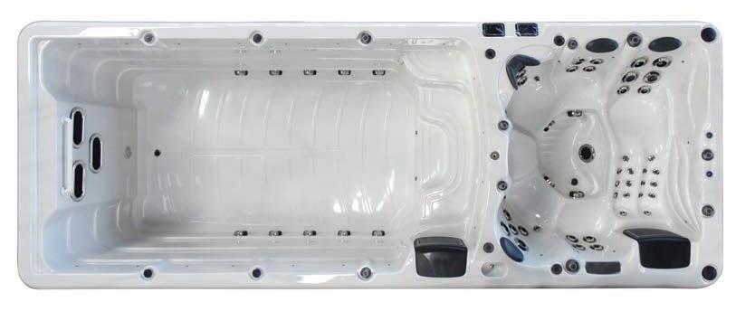They offer a stunning luxurious finish with functional performance and can be provided with a range of optional extras such as turbine driven counter-current units, loungers and neck massagers.