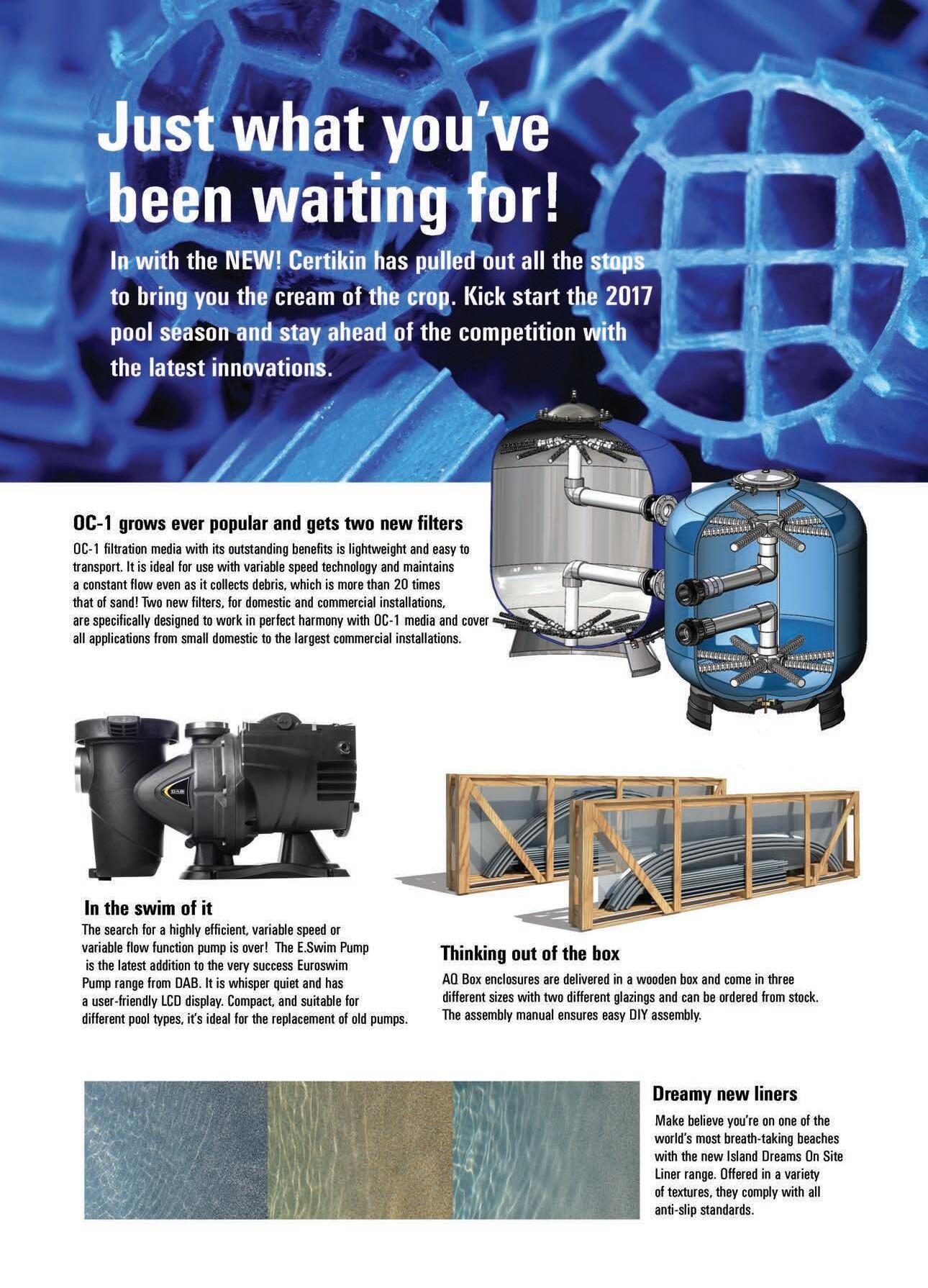 We also explore what’s new in the one-piece and fibreglass pools market, a sector that’s taking the hassle out of installations for both pool builders and owners alike and on the subject of convenience, we’ve an in depth look at the latest automatic cover systems too. High-end swim spas also have the spotlight on them this issue plus we’ve also a feature on the very latest in pool liners and systems.