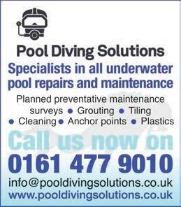 BUYERS GUIDE 82 April 2017 SPN www.swimmingpoolnews.co.uk CONTROL PANELS CEILING SYSTEMS The Complete, Nationwide, Pool Repair and Refurbishment Service info@universalpool.co.uk 0161 799 1222 07903 779516 24HR EMERGENCY CALL OUT DIVING –REPAIRS & MAINTENANCE DESIGN & TILING info@universalpool.co.uk The Complete, Nationwide, Pool Repair Underwater Service 0161 799 1222 07903 779516 All our divers are registered with the HSE and are covered by relevant insurances. SWIMMING POOL ENGINEERING SERVICES CONDITION SURVEYS CLEANING • RE-GROUTING TILING • DRILLING POOLSIDE EQUIPMENT 24HR EMERGENCY CALL OUT FLOOR SERVICING BOWMAN ® EJBowman(Birmingham)Ltd ChesterStreet,B’hamB64AP,UK Tel:+44(0)1213595401 Fax:+44(0)1213597495 Email:info@ejbowman.co.uk Manufacturersofswimming poolheatexchangersfor chlorine,salineandspapools. HEAT EXCHANGERS EXPORT BUSINESS DEVELOPMENT Europe Russia and Ukraine The Middle East North Africa South Asia Pumps • Filters • Disinfection • UV • Ozone • Dosing • Heating • Cooling • Lighting • Heat Pumps • Pool Safety International Business Development Ltd First floor, Adelphi Mill, Bollington, Cheshire, England SK10 5JB Tel: +44 (0)1625 501576 Mail: ahmad arafa@ibdevelopment eu Web: www.ibdevelopment.eu EXPORT PROSPECTING EXPORT SALES & MARKETING EXPORT TECHNICAL SUPPORT FILTRATION DEHUMIDIFICATION FILTRATION DIVING –REPAIRS & MAINTENANCE