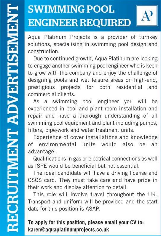 For our forward features, please visit our website at www.swimmingpoolnews.co.uk